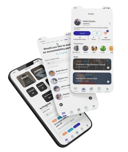 With the Dorpmaine app, it's all about achieving greatness together through social accountability. Unleash your potential with like-minded people and turn your goals into reality.